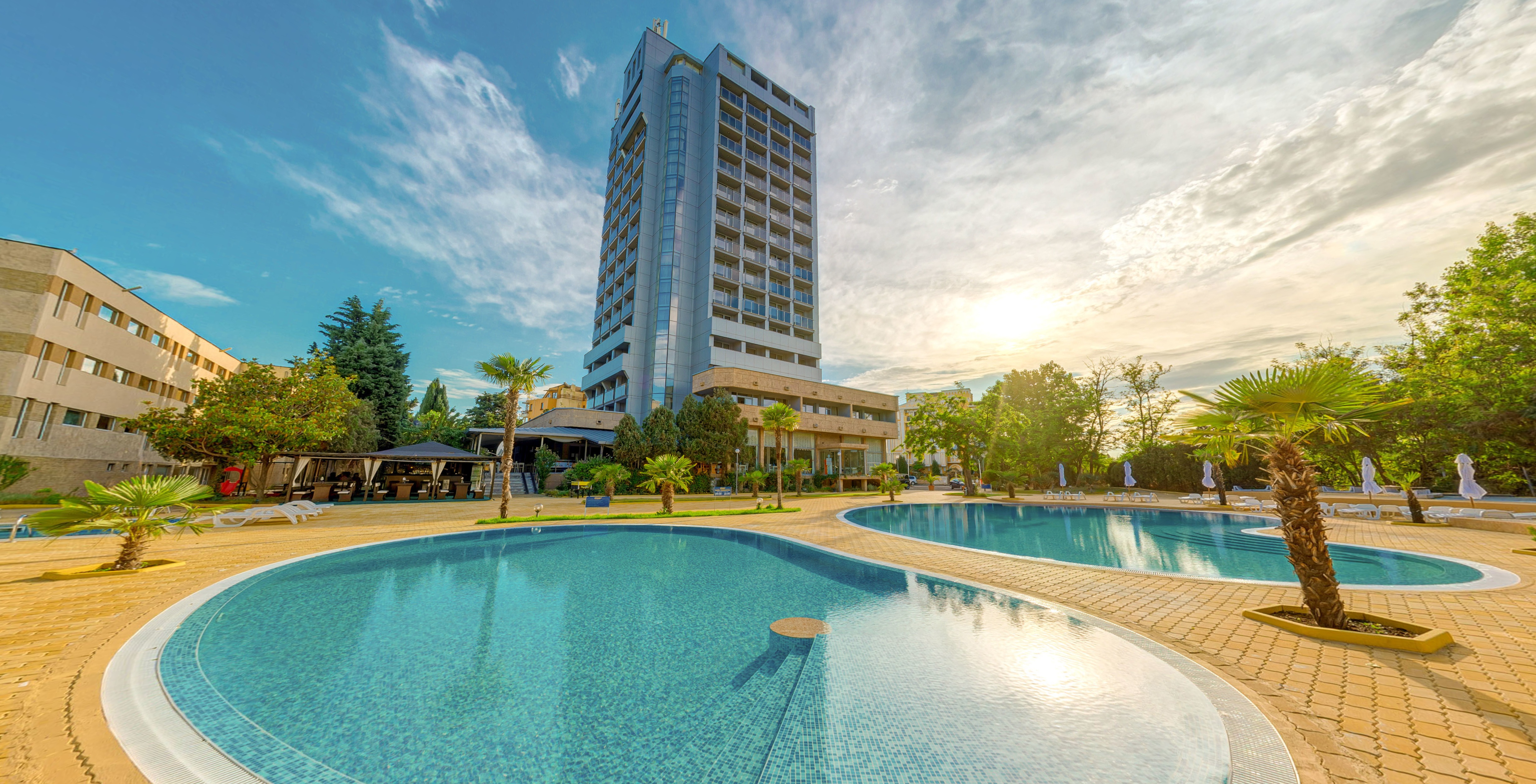 студиа, 18 апартамента, ресторант с тераса, 2 басейна за възрастни и 1 за деца,